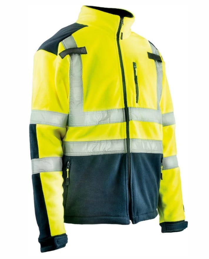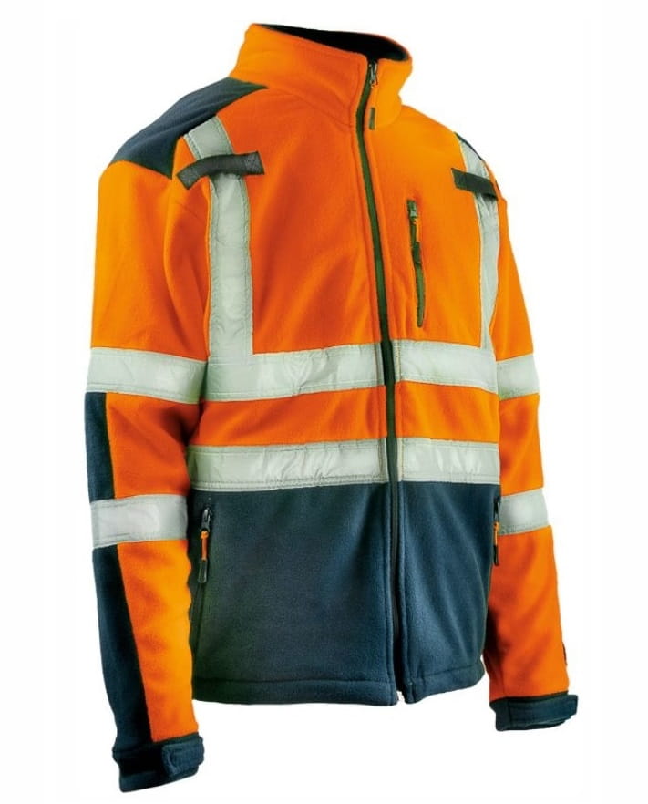 | Wykonanie: | Bluza polarowa zapinana na suwak wyposażona w dwie kieszenie dolne oraz kieszeń na lewej piersi zapinane na suwak. Na dole bluzy regulacja za pomocą stoperów, mankiety z regulacją na rzep. Bluza wyposażona w zaczepy na komunikator. Naszyte poziome i pionowe pasy odblaskowe. |