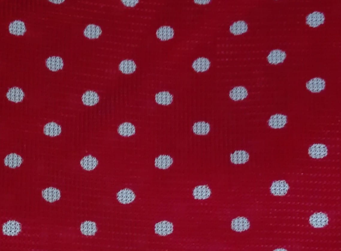 | Kolor: | biały ze wstawkami czerwonymi w białe groszki |