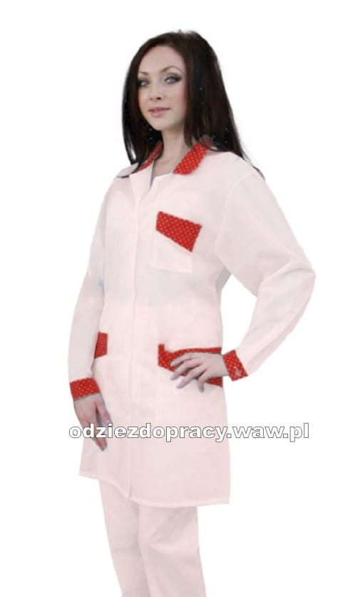 Fartuch M-061 z długim rękawem biały z czerwonymi wstawkami