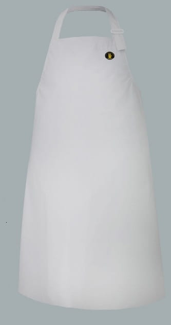 | Wykonanie: | Fartuch, zapaska z karczkiem zakładana na szyję z regulacją długości za pomocą klamerki, z tyłu długie troczki do wiązania. Wykonany z wodochronnej, odpornej na tłuszcze, enzymy, soki trawienne i środki dezynfekujące tkaniny Plavitex. Produkt odporny na zginanie przy dużych ujemnych temperaturach do -50 C. |