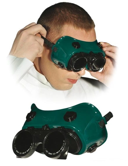 Gogle spawalnicze z okrągłymi szybkami.