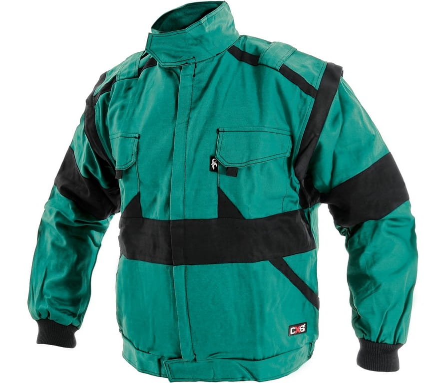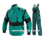 Bluza robocza z odpinanymi rękawami, zapinana na suwak kryty plisą. Posiada dwie kieszenie w dolnej części i trzy kieszenie w górnej części zapinane na rzepy,gumę ściągającą w pasie. Mankiety zakończone elastycznym ściągaczem. Spodnie ogrodniczki na regulowane szerokie szelki z gumy. W pasie z tyłu gumka. Ogrodniczki wyposażone w dwie przednie przestrzenne kieszenie rozszerzane, dużą kieszeń na karczku spodni zamykaną na suwak, kieszeń na metrówkę, szlufkę na młotek, kieszeń boczna i tylna zapinana na rzep. |
