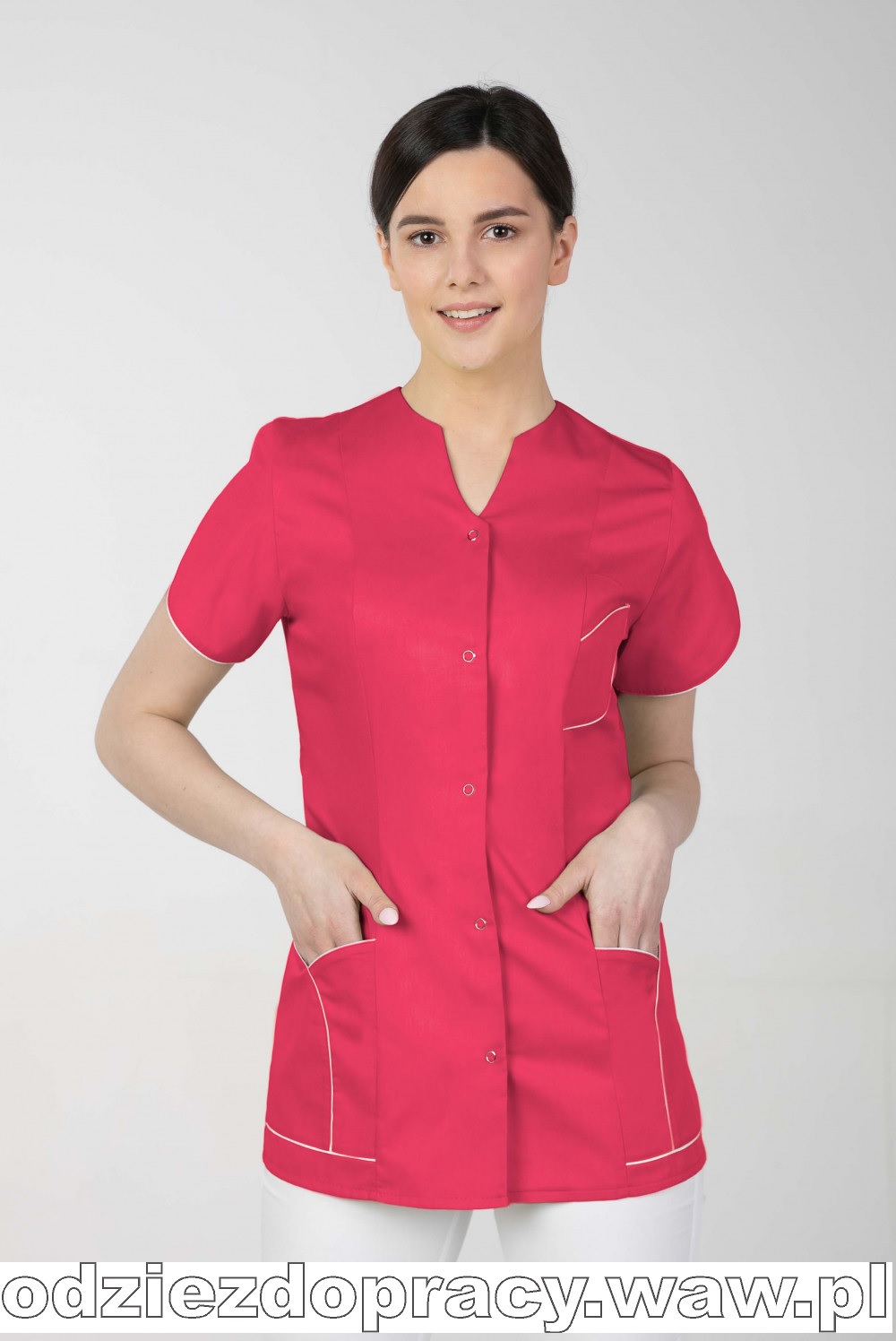 | Kolekcja: | Żakiet medyczny damski z krótkim rękawem, polskiej produkcji, M-310. Fartuch z wysokogatunkowej elanobawełny, krój dopasowany. |