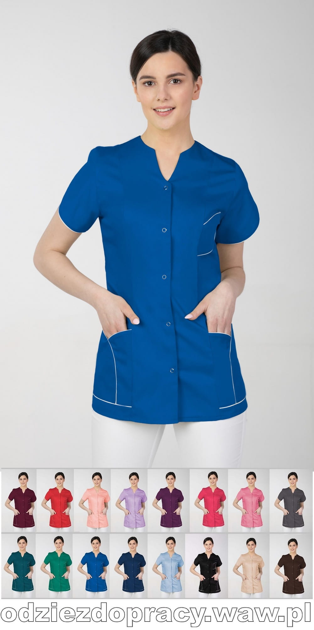 | Kolekcja: | Żakiet medyczny damski z krótkim rękawem, z polskiej produkcji, M-310 Fartuch z wysokogatunkowej elanobawełny, krój dopasowany. |