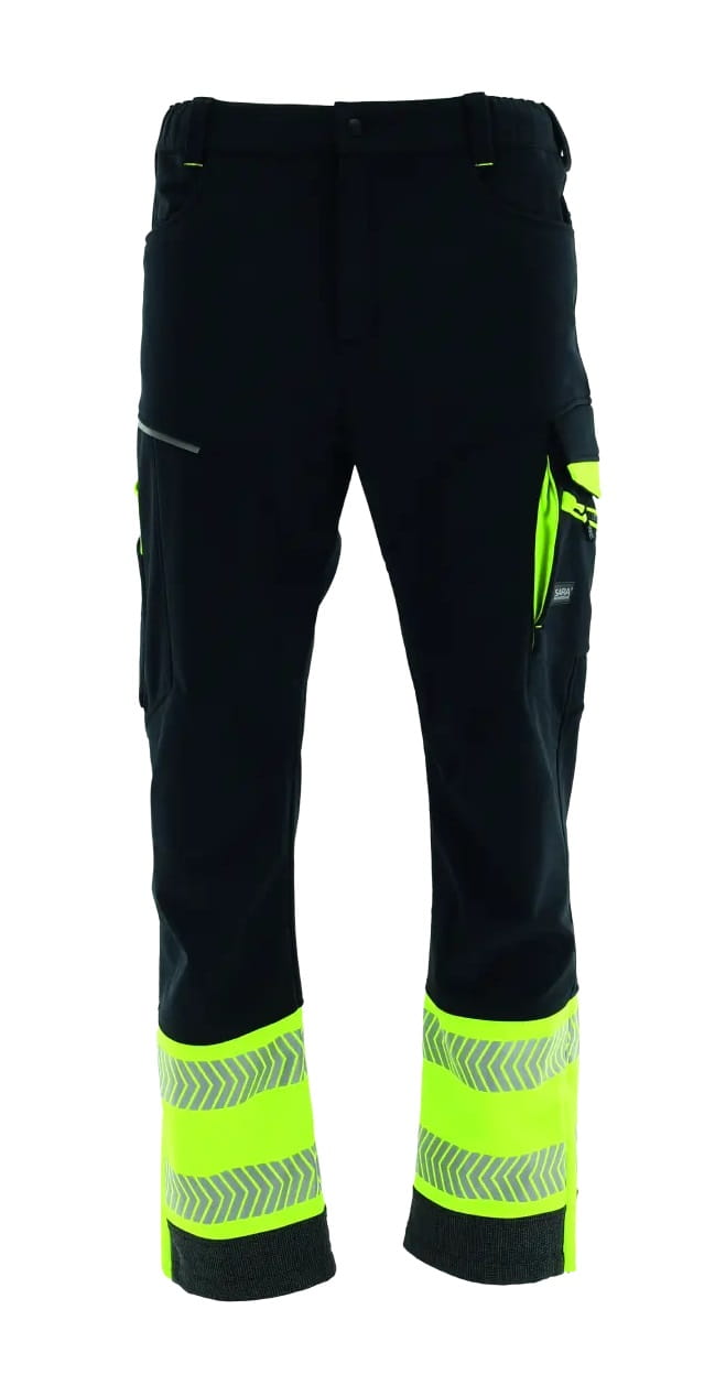 SARA COMFORT NEO WINTER ocieplane spodnie softshell z taśmą odblaskową czarny seledyn