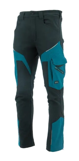 Spodnie do pasa softshell od wewnątrz wyściełane polarem. Wyposażone w dwie kieszenie przednie, jedną kieszeń z tyłu oraz jedną dużą kieszeń na lewej nogawce zapinaną na rzep z dodatkową kieszonką zapinaną na suwak i rozbudowaną kieszeń na miarkę. Zamek błyskawiczny na dole spodni zapewniający lepsze dopasowanie obwodu nogawki i komfort przy zakładaniu; Podwyższony tył chroniący przed zimnem oraz szlufki na pasek. |