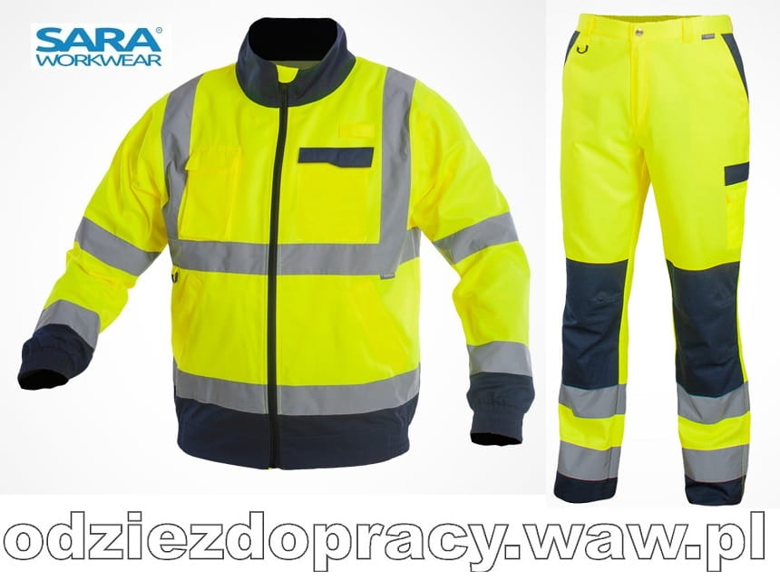 | Kolekcja: | Komplet ostrzegawczy bluza i spodnie na pas z kolekcji SARA DROGOWIEC z tkaniny wysokogatunkowej biver z taśmą ostrzegawczą. |
