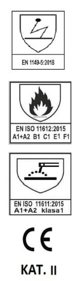 | Norma / Certyfikat: | EN 20340, CE kategoria I, PN-EN 11612, 11611, 1149-5, 14058 |