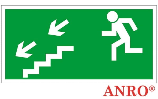| Rodzaj: | Znak BHP ewakuacyjny ,, Kierunek do wyjścia drogi ewakuacji schodami w dół w lewo' |